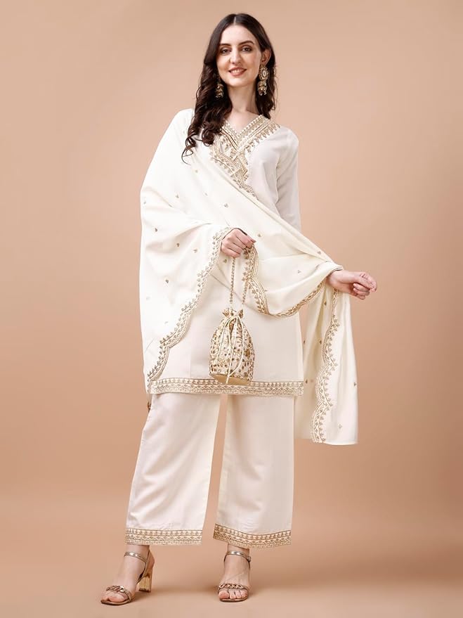 - Kurta : Size – Small; Kurti Measurements: Bust Size-34.5 Inches, Waist Size-32, Inches Shoulder Size-14.5 Inches, Sleeve Length: 3/4 Sleeves Kurti Length : 45 inches approx,Dupatta Length : 2.25 Meter