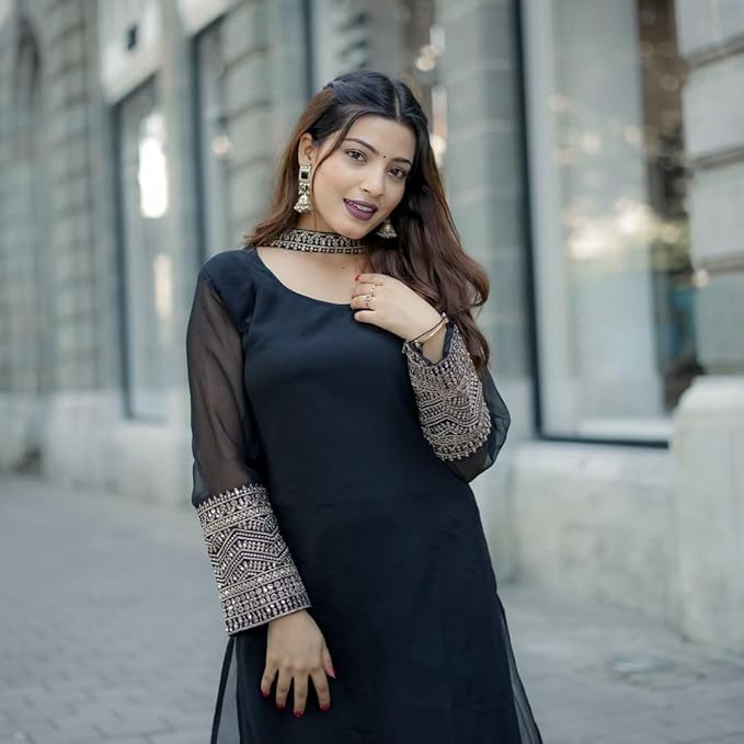 - Kurta details | Color : Black | Fabric : Georgette | Pattern :- Lace work | Kurta Type: Straight | Length : Knee Length